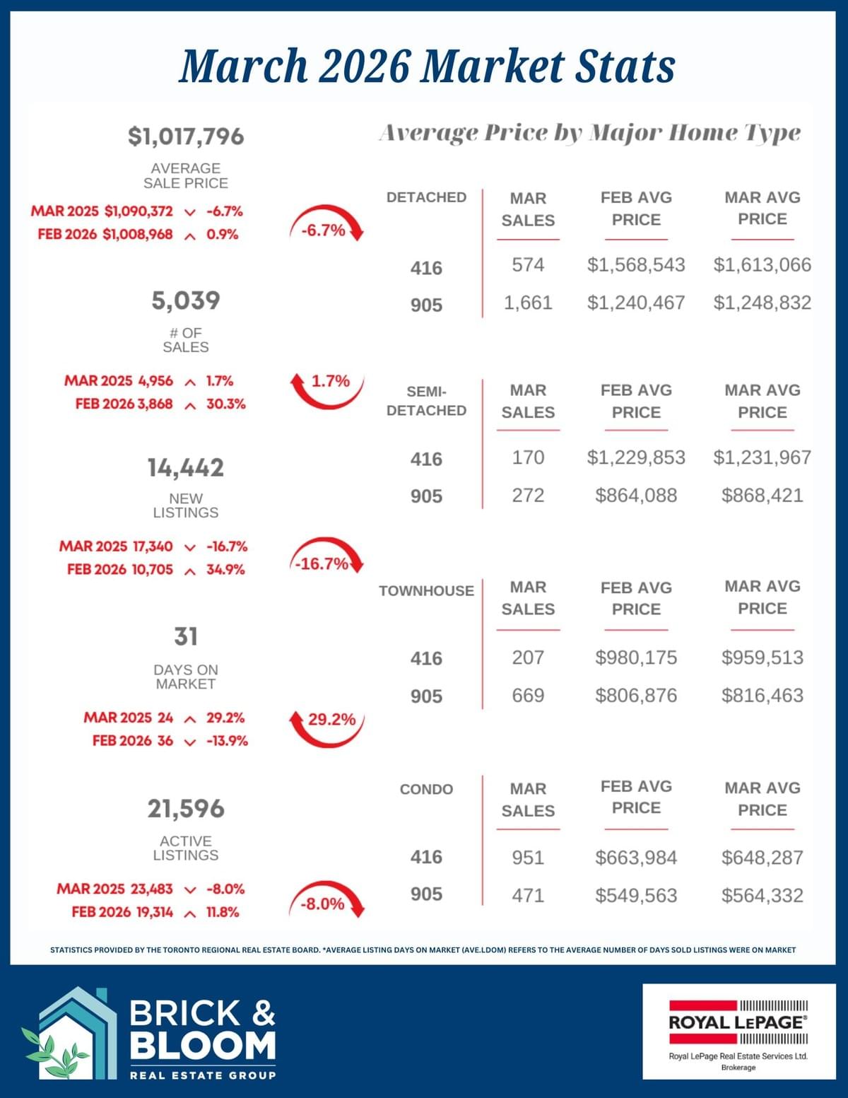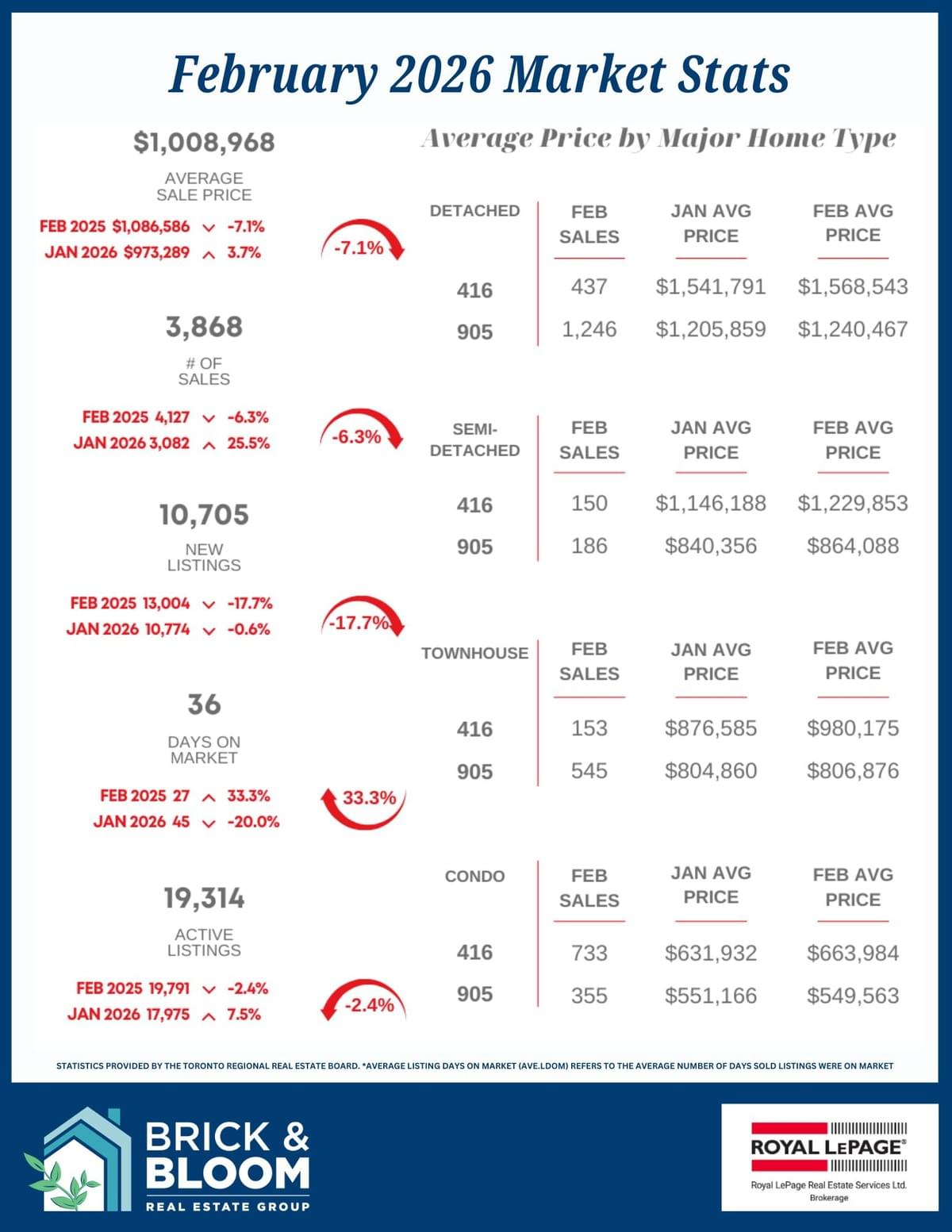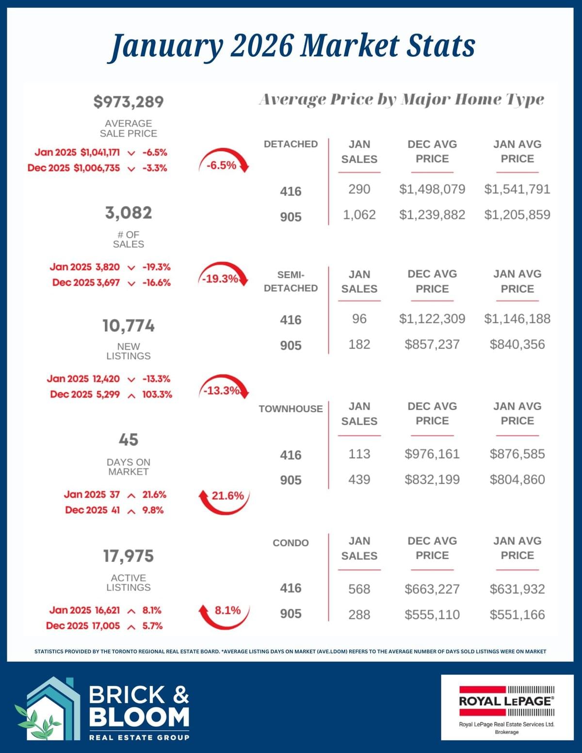 We provide you with concise, easy-to-understand summaries of the monthly statistics published by the Toronto Regional Real Estate Board.